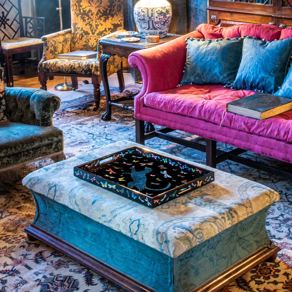 Bandeja lacada hecha a mano, perfecta para servir té, bebidas o aperitivos.