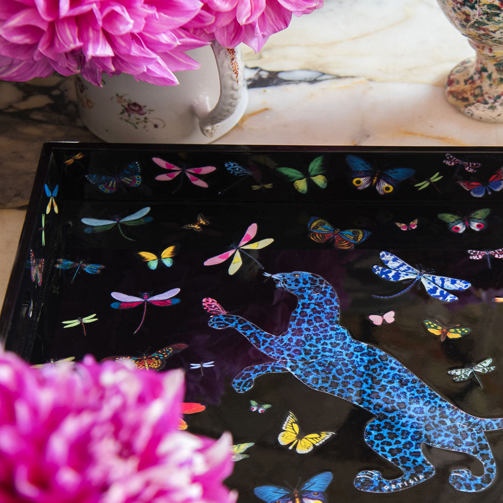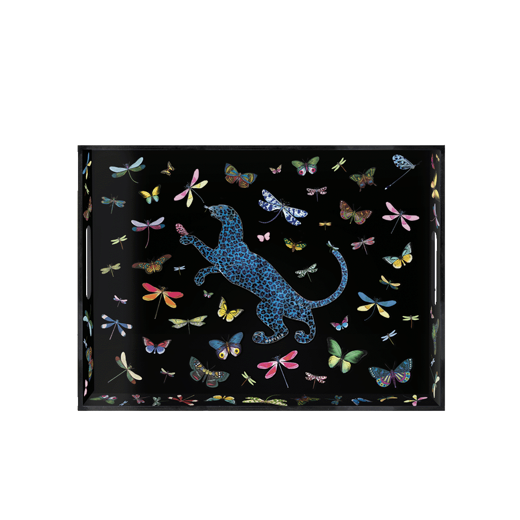 Bandeja lacada hecha a mano, perfecta para servir té, bebidas o aperitivos.