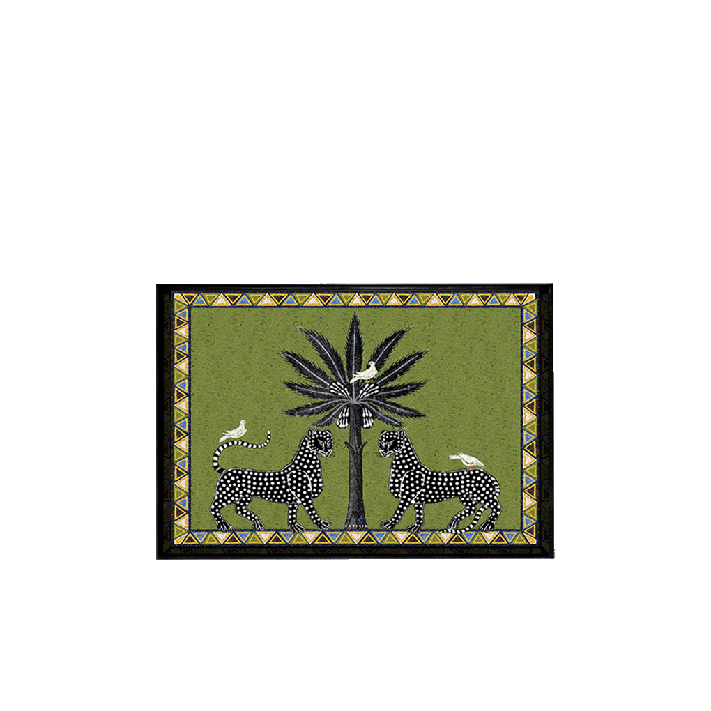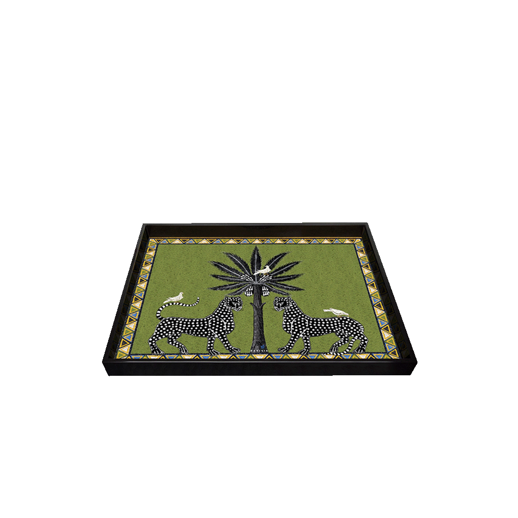 Bandeja lacada hecha a mano, perfecta para servir té, bebidas o aperitivos. En tonalidad verde.