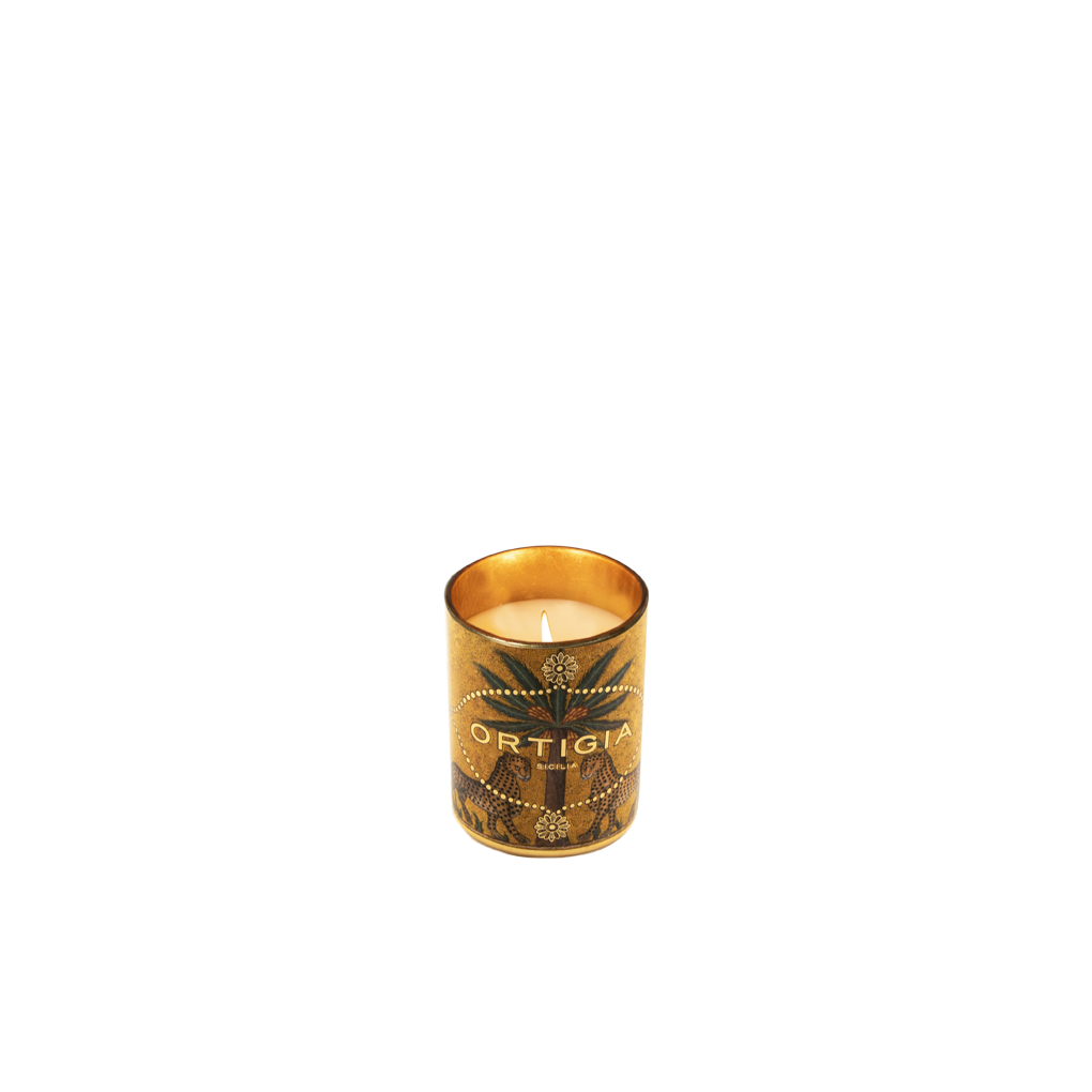 Con detalles artesanales en pan de oro, el estampado crea un efecto impresionante mientras arde.
