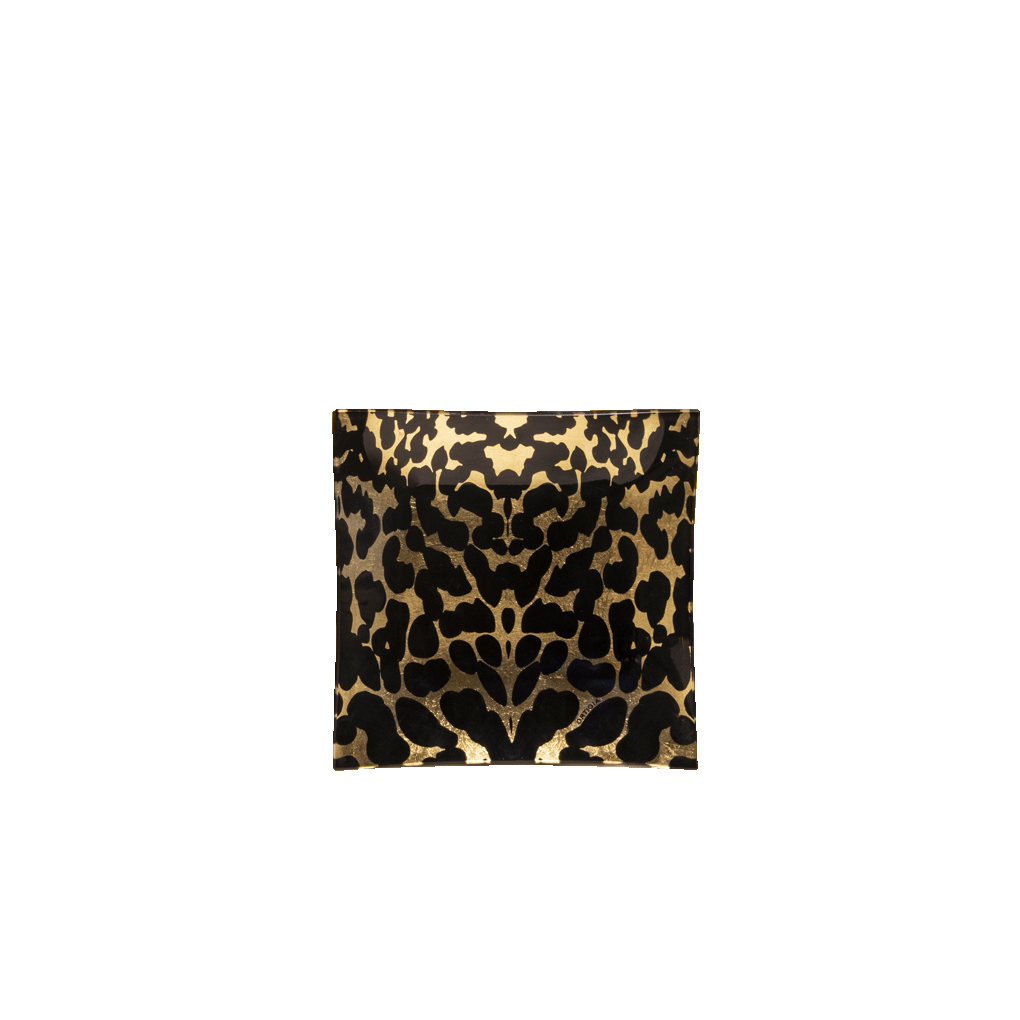 Plato de cristal Ortigia con acabado dorado y estampado de leopardo.