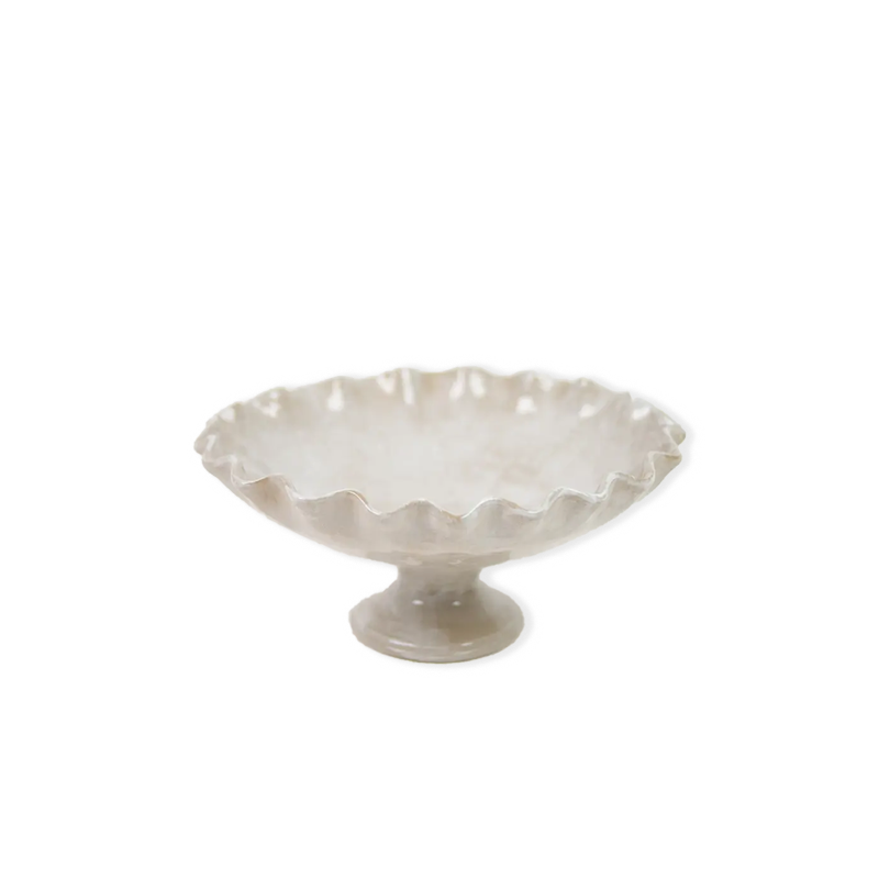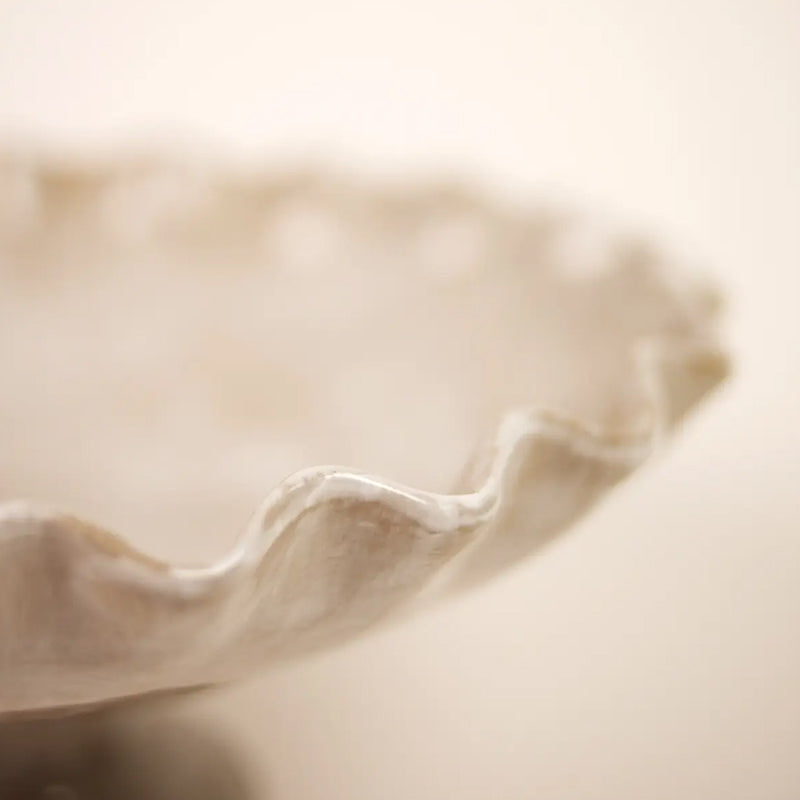 Preciosa fuente para servir con borde ondulado y acabado brillante.
