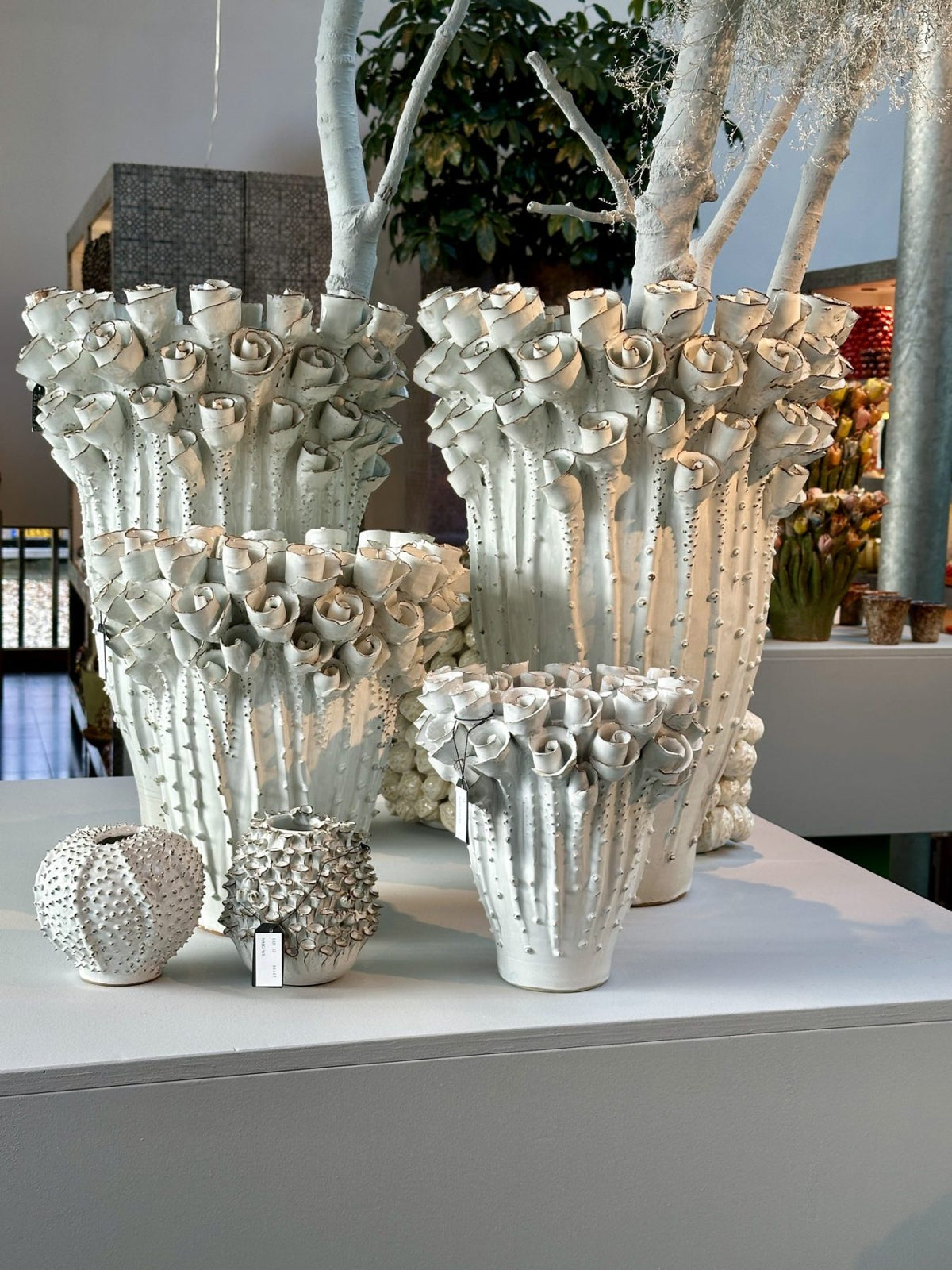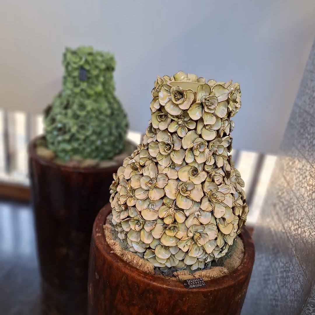 La colección Des Pots Flowers muestra una artesanía extraordinaria, ricamente texturizada con pétalos esculpidos a mano, esmaltados individualmente con pinceladas visibles y variaciones orgánicas.