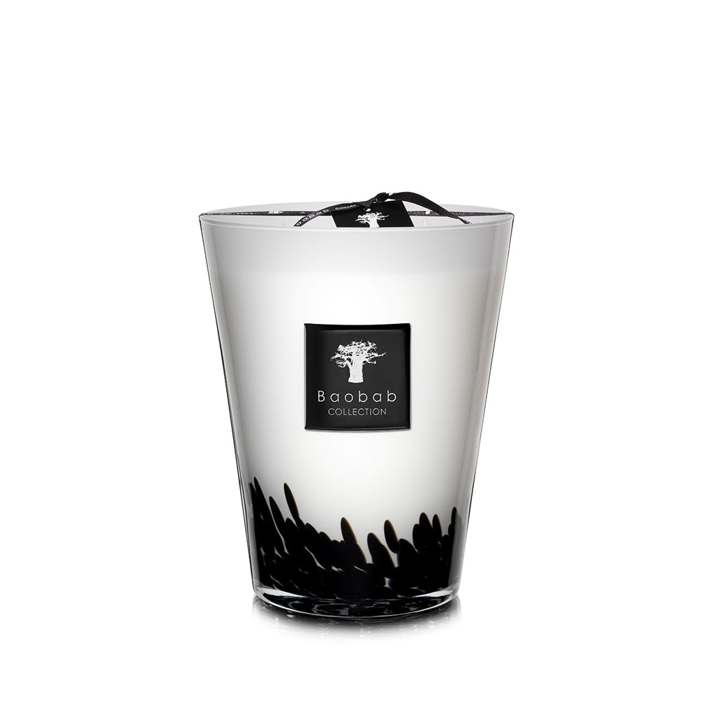 La fragancia de la vela perfumada Feathers combina la fragilidad de la rosa negra y la potencia de la madera de oud. En su envase, podemos observar incrustaciones en negro sobre el cristal soplado que nos hace recordar a las plumas. Al encenderse, la vela se ilumina delicadamente con una luz sugerente cálida y elegante.